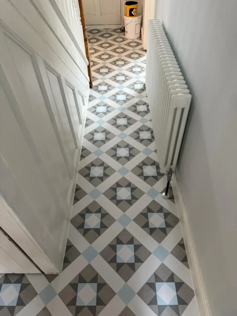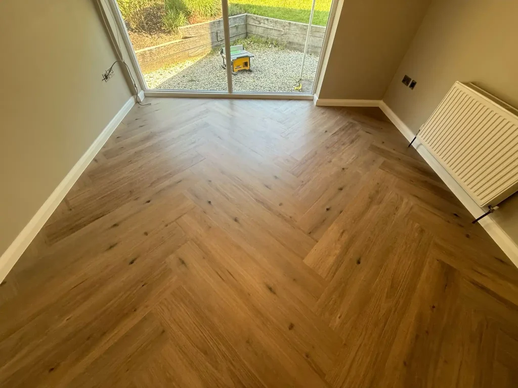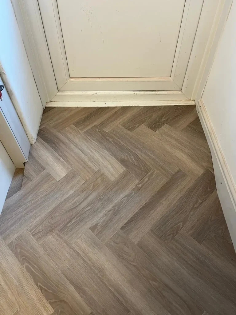 Residential - Karndean Van Goag - Parquet Flooring fitted Herringbone style with 1 piece border - Finished bullnose in LVT