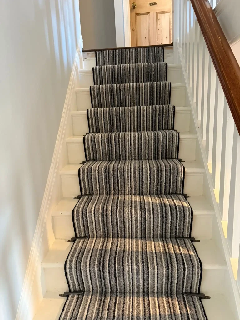 Residential - Solid wood Parquet fitted to lounge hallway - quarter landing with stripe carpet