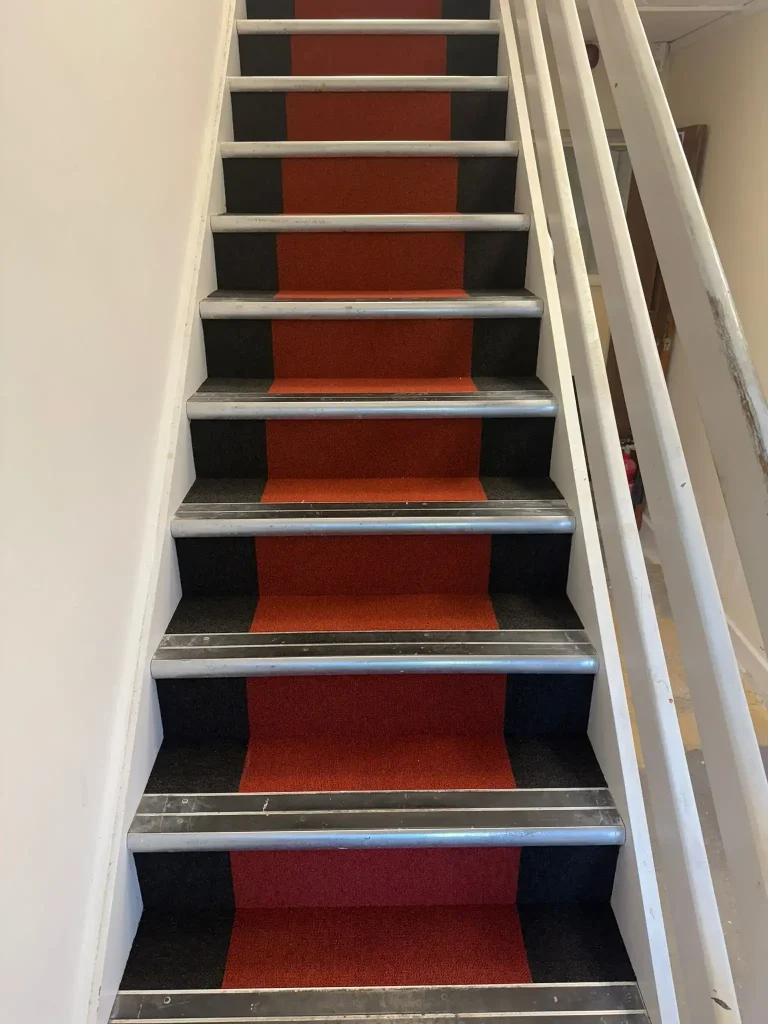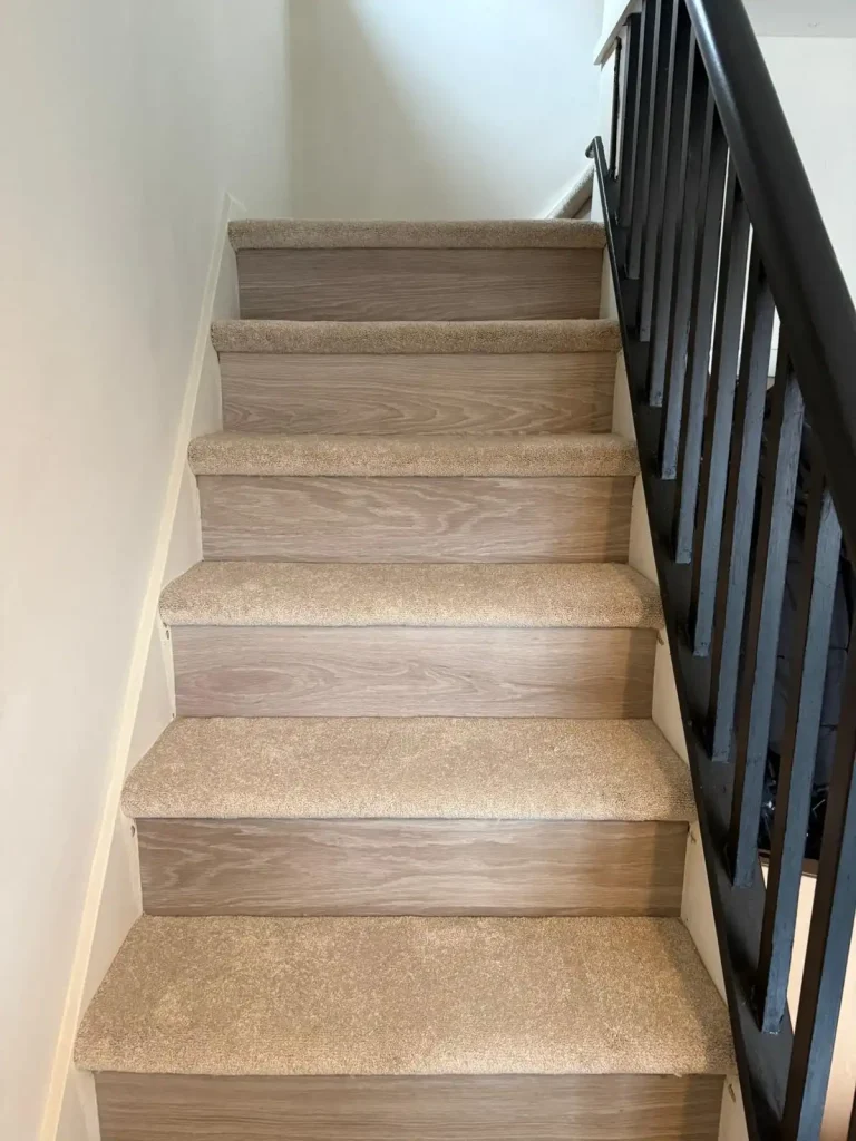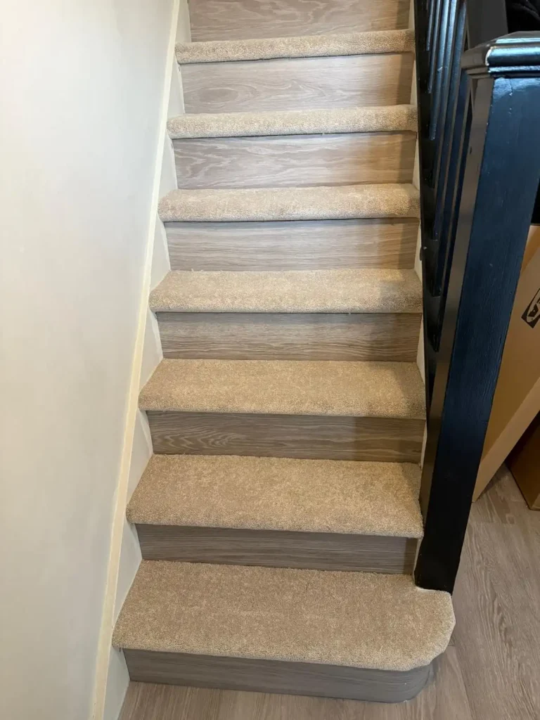 Residential - Carpet to the tread in bullnose style with karndean fitted to the riser