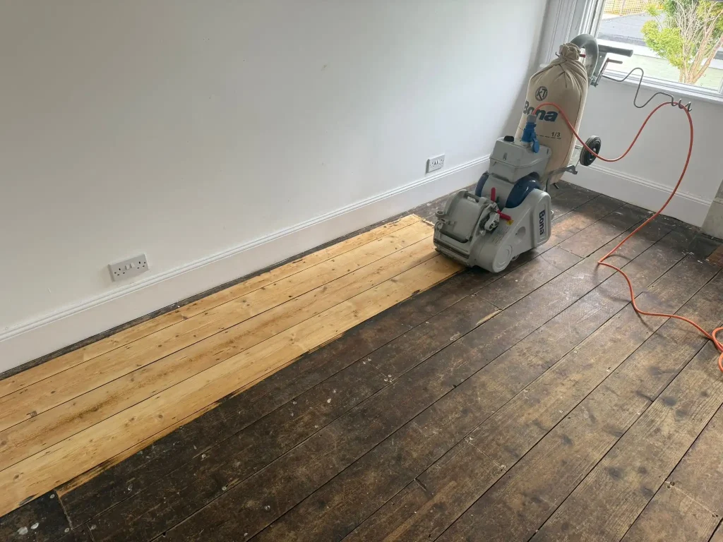 Residential - Sand & Seal - Restoration of wood floor - Beginning - Sanded back ready for priming & lacquering